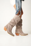Estas botas de cuero y gamuza son el complemento ideal para tus outfits. Con un diseño elegante y moderno, son perfectas para cualquier ocasión, ya sea un día casual o una salida especial.